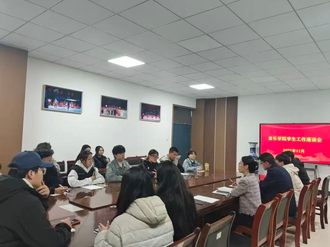 在学风建设月期间,音乐学院召开学生工作座谈会,凝聚学风建设共识、明确工作方向。学院党委书记潘刻科、党委副书记姜星及全体辅导员参加会议。潘刻科结合学校学风建设总体要求,分析了当前学院在教学与学生管理方面存在的学风相关问题,并提出初步改进思路。会议认真听取了学生代表关于课程设置、学习资源保障、学风监督机制等方面的建议,学院领导逐一回应、深入交流。整场座谈会气氛庄重而热烈,为后续制定切实可行的学风建设举措奠定了坚实基础。