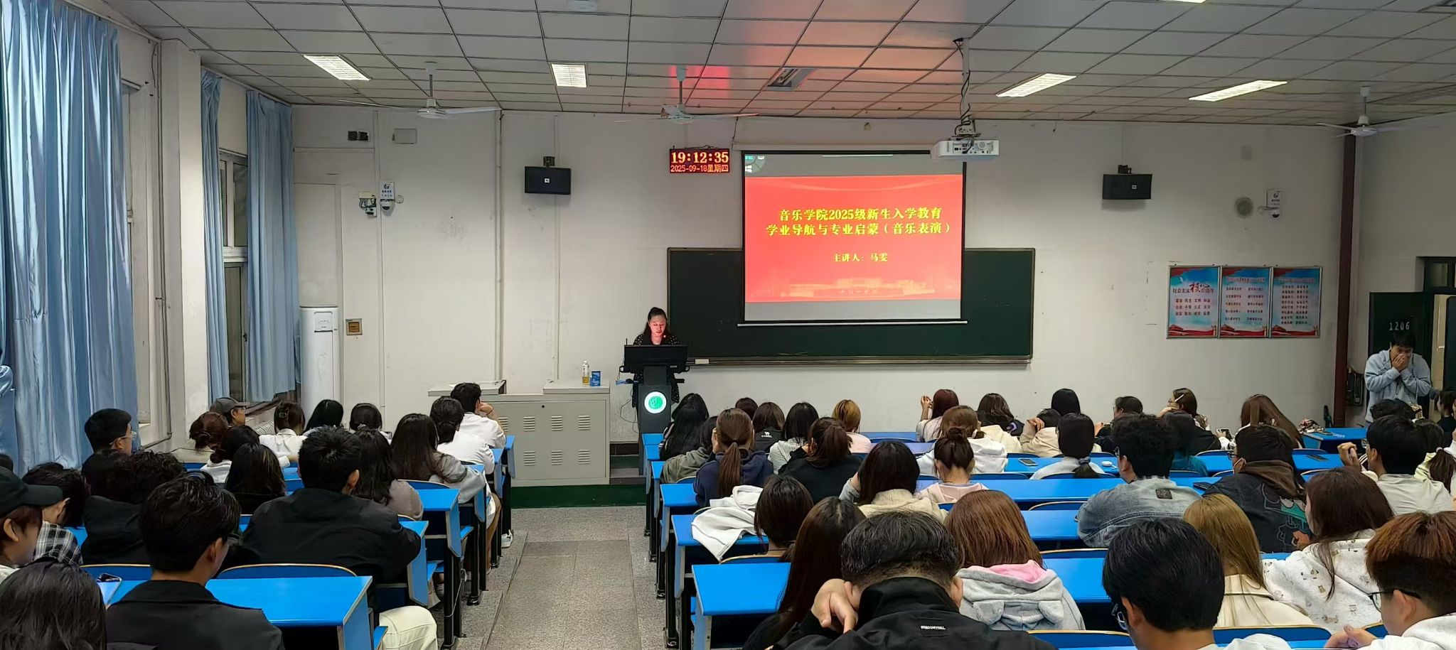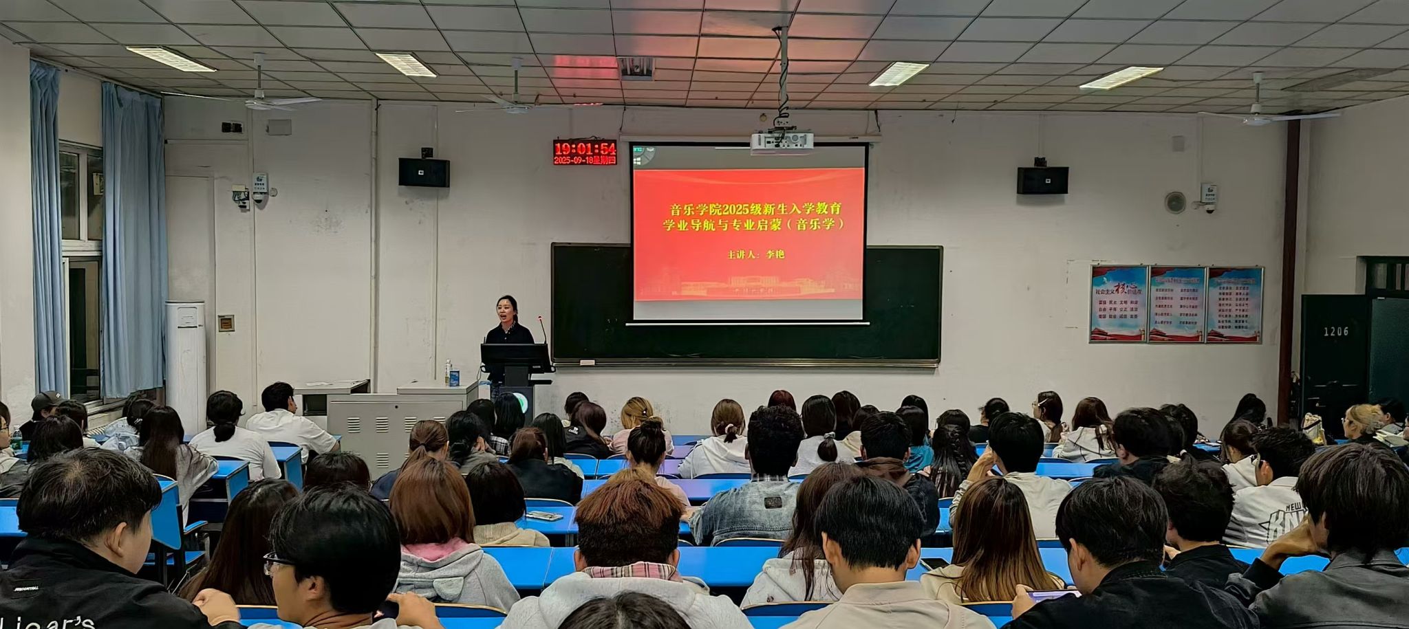 2025年9月18日晚,平顶山学院音乐学院2025级新生学业导航与专业启蒙讲座如期开讲。学院针对音乐学、音乐表演两个专业的人才培养特色,分别邀请李艳老师、马雯老师担任主讲人,为全体新生量身打造了一场干货满满的专业启蒙课。