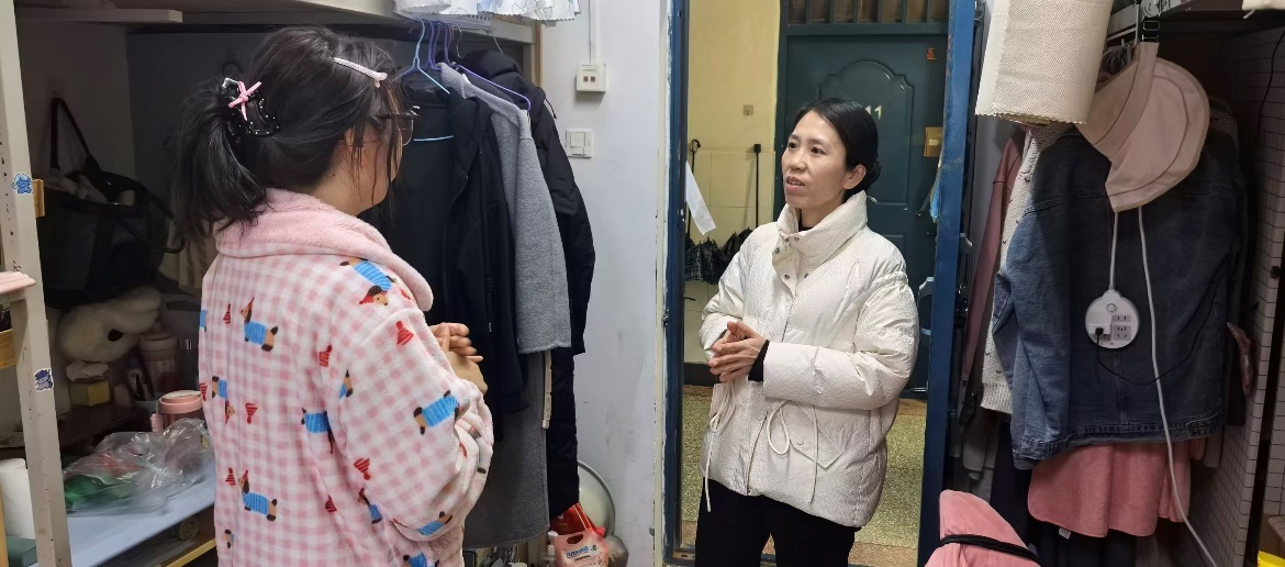 “同学们,新学期好!”每到一间宿舍,老师们都面带微笑,与大家亲切交流,详细询问同学们的假期生活、返校适应情况以及新学期的学习安排,认真倾听大家的心声,细致了解宿舍设施使用、饮食起居等实际需求,叮嘱大家要尽快调整作息,以饱满的精神状态投入到新学期的专业学习与校园生活中。