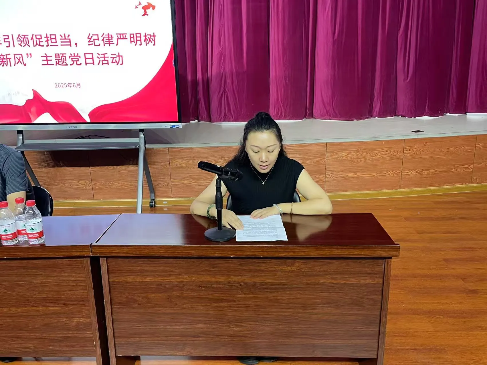 2025年6月19日下午,音乐学院教工支部在音乐厅开展以“榜样引领促担当,纪律严明树新风”为主题的党日活动,活动由音乐学院教工党支部书记郭琳琳主持,全体教工党员参加了本次活动。