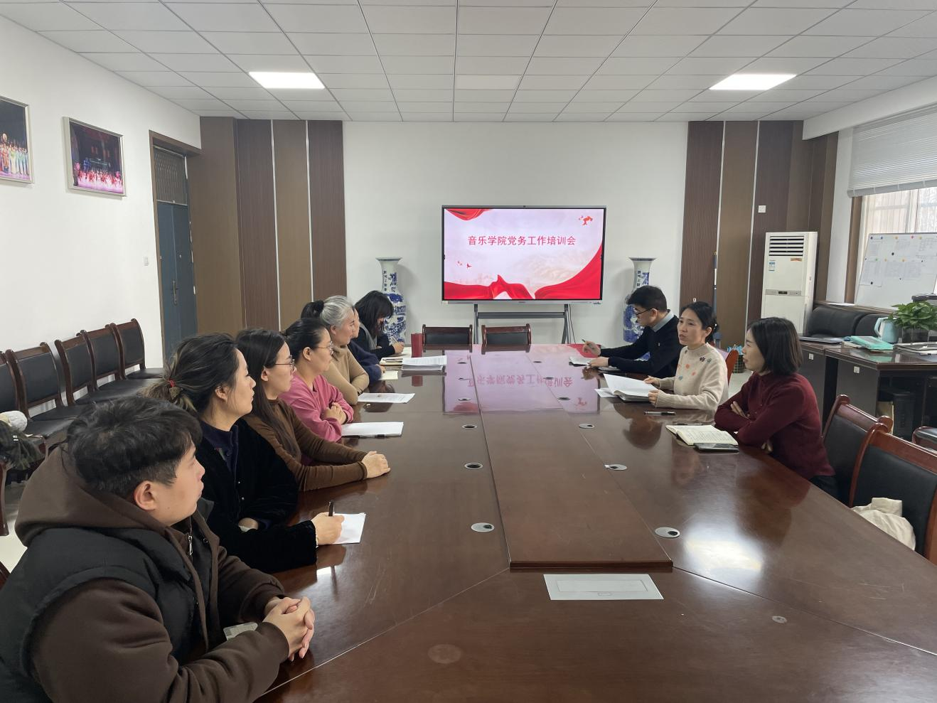 为深入学习贯彻习近平新时代中国特色社会主义思想和党的二十大精神,全面落实新时代党的建设总要求,进一步规范党务工作流程,提升党务工作者业务素养和履职能力,推动学院党建工作标准化、规范化发展,2025年12月18日,音乐学院在艺术楼A105办公室召开党务工作培训会。学院党委委员及各党支部委员参加本次培训。会议由党委副书记姜星支持。
